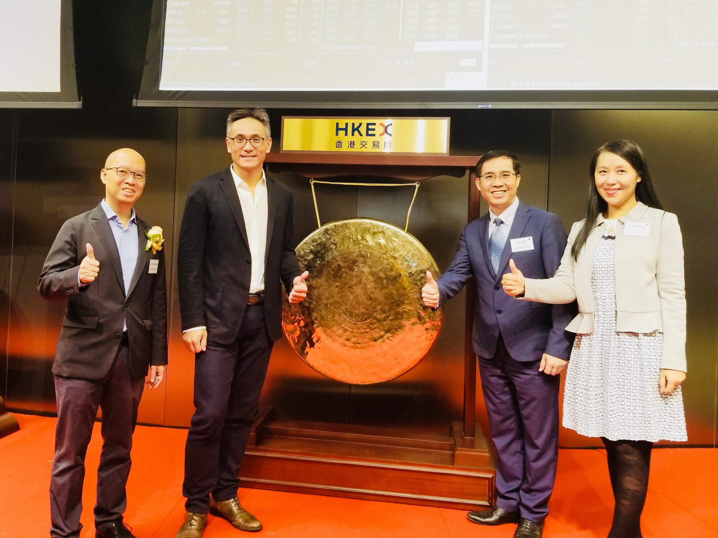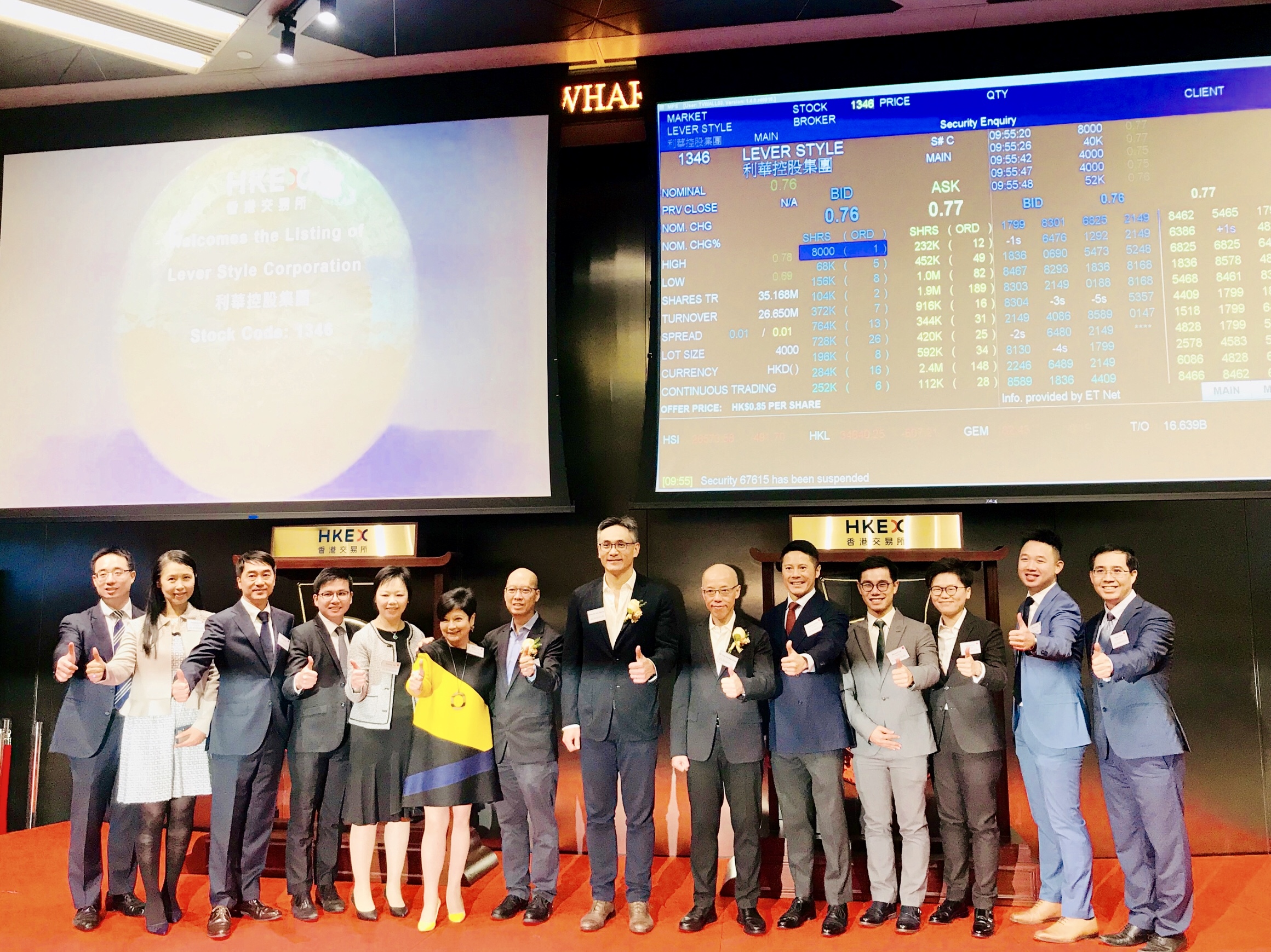 2019年11月13日上午9時(shí)30分,Lever Style Corporation(利華控股集團(tuán))于香港聯(lián)交所主板成功掛牌上市,股份代號(hào):1346。廣東廣信君達(dá)律師事務(wù)所高級(jí)合伙人陳遠(yuǎn)樂(lè)律師與合伙人謝捷律師作為該項(xiàng)目委聘的中國(guó)法律顧問(wèn),應(yīng)邀出席上市儀式及慶功宴。