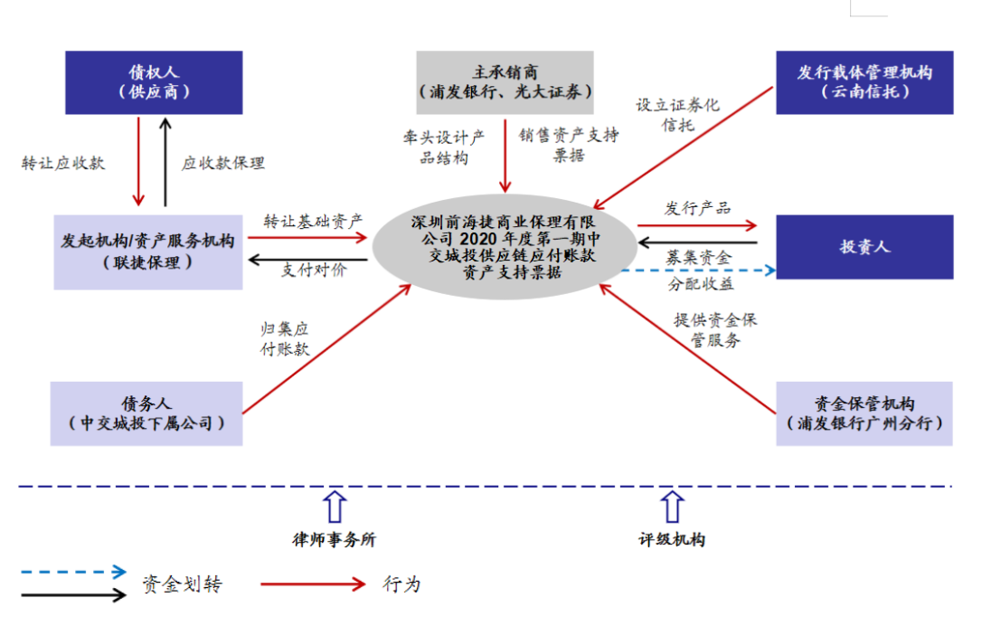 2020年6月28日,中國(guó)銀行間市場(chǎng)交易商協(xié)會(huì)出具《接受注冊(cè)通知書(shū)》(中市協(xié)注【2020】ABN110號(hào)),同意深圳前海聯(lián)捷商業(yè)保理有限公司(下簡(jiǎn)稱“聯(lián)捷保理”)作為發(fā)起機(jī)構(gòu)注冊(cè)金額不超過(guò)30億元的資產(chǎn)支持票據(jù),核心企業(yè)為中交城市投資控股有限公司(下簡(jiǎn)稱“中交城投”)。廣信君達(dá)律師事務(wù)所擔(dān)任該項(xiàng)目的專項(xiàng)法律顧問(wèn)。
